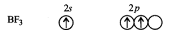 उत्तर: बोरॉन ट्राइफ्लुओराइड $\left( {BFs} \right)$— इसमें केन्द्रीय परमाणु बोरॉन है। जिसका इलेक्ट्रॉनिक विन्यास $1{s^2}2{s^2}2p1$, है। तलस्थ अवस्था में इसमें केवल एक अयुग्मित इलेक्ट्रॉन है जिसके आधार पर केवल एक सहसंयोजक बन्ध ही बन सकता है। अतः $B{F^3}$अणु बनने में यह अवश्य ही उत्तेजित अवस्था में होगा जिस स्थिति में एक s-इलेक्ट्रॉन p-कक्षक में उन्नत हो जाएगा|