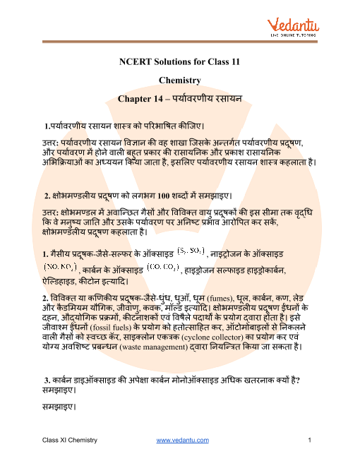 FAQs on NCERT Solutions For Class 11 Chemistry Chapter 14 Environmental Chemistry in Hindi - 2025-26