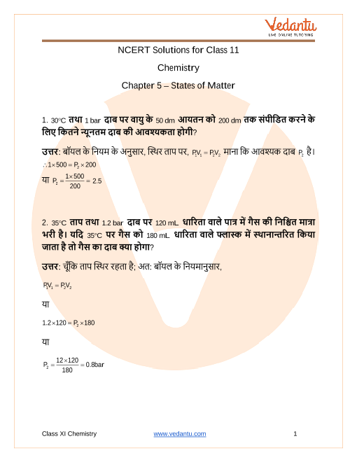 NCERT Solutions for Class 11 Chemistry Chapter 5 in Hindi medium PDF download are easily available on our official website (vedantu.com). Upon visiting the website, you have to register on the website with your phone number and email address. Then you will be able to download all the study materials of your preference in a click. You can also download the Class 11 Chemistry States of Matter solution Hindi medium from Vedantu app as well by following the similar procedures, but you have to download the app from Google play store before doing that.