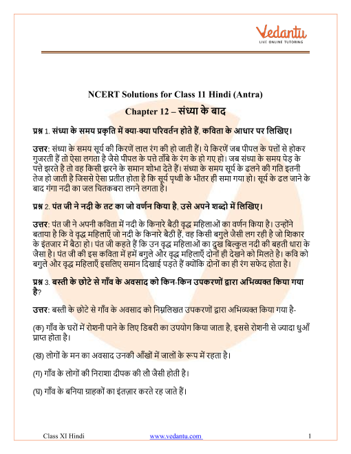 FAQs on NCERT Solutions for Class 11 Hindi Antra Poem Chapter 12 Sandhya Ke Baad 2025-26