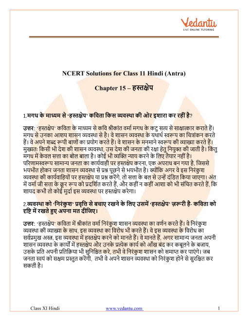 FAQs on NCERT Solutions For Class 11 Hindi Antra (Poem) Chapter 15 Hastakshep - 2025-26