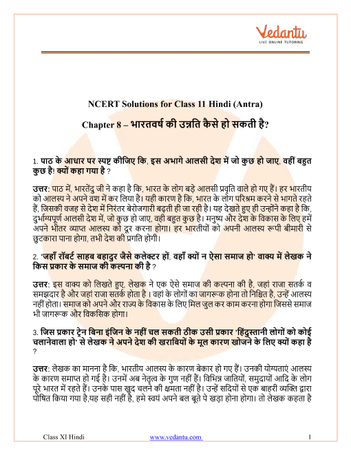 FAQs on NCERT Solutions For Class 11 Hindi Antra Chapter 8 Bharatvarsh Ki Unnati Kaise Ho Sakti Hai - 2025-26