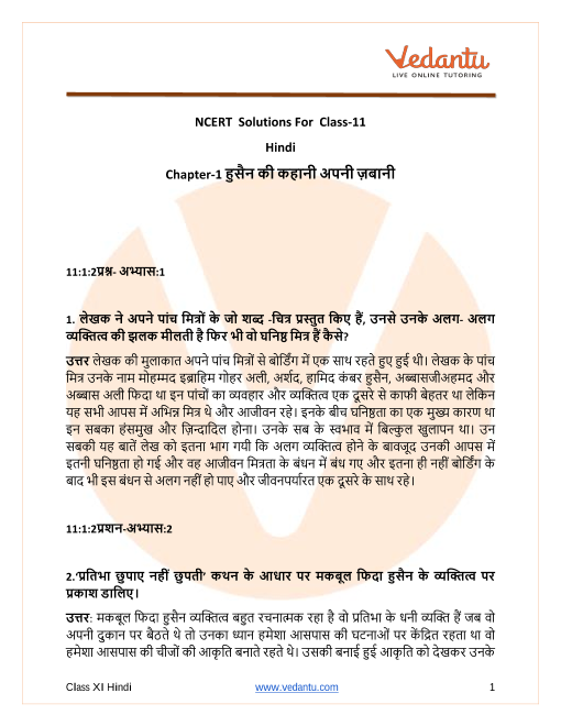 FAQs on NCERT Solutions for Class 11 Hindi Chapter 1 Hussain Ki Kahani Apni Zubani