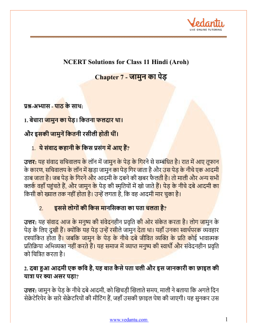 FAQs on NCERT Solutions for Class 11 Hindi Chapter 7 Jamun Ka Ped
