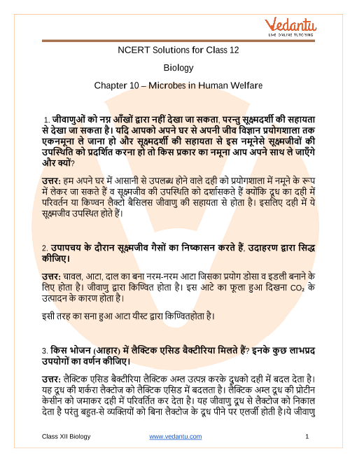 1. Where can I find accurate and step-by-step NCERT Solutions for Class 12 Biology Chapter 10, Microbes in Human Welfare?