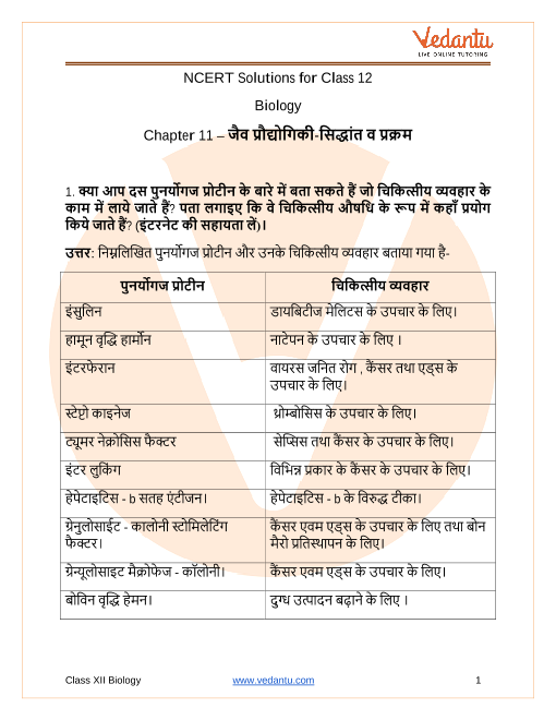 FAQs on NCERT Solutions For Class 12 Biology Chapter 11 Biotechnology Principles and Processes in Hindi - 2025-26