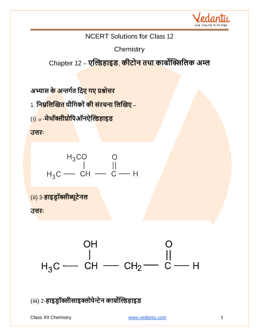 FAQs on NCERT Solutions For Class 12 Chemistry Chapter 12 Aldehydes, Ketones And Carboxylic Acids in Hindi - 2025-26