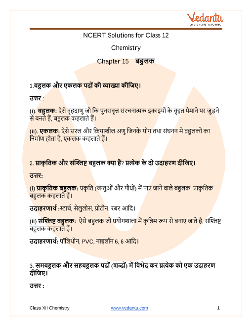 Step-by-Step Solutions For Class 12 Chemistry Chapter 15 In Hindi - Free PDF Download