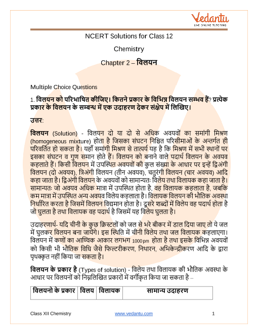 NCERT Solutions in Hindi medium have been created keeping those students in mind who are studying in a Hindi medium school. These NCERT Solutions for Class 12 Chemistry Solutions in Hindi medium pdf download have innumerable benefits as these are created in simple and easy-to-understand language. The best feature of these solutions is a free download option. Students of Class 12 can download these solutions at any time as per their convenience for self-study purpose.