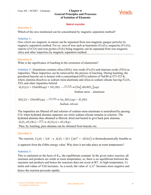 FAQs on NCERT Solutions For Class 12 Chemistry Chapter 6 General Principles And Processes Of Isolation Of Elements - 2025-26