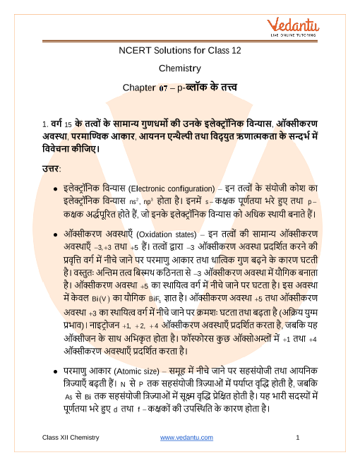 NCERT Solutions for Class 12 Chemistry Chapter 7 The p-Block Elements In Hindi Medium