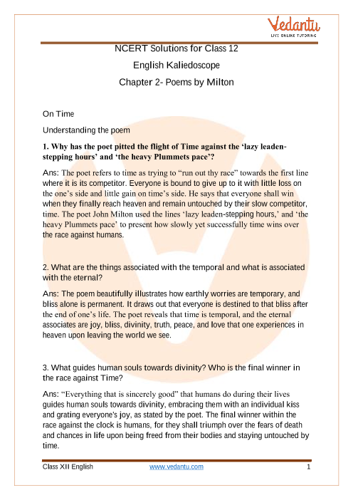 8. In what ways are the NCERT Solutions for Chapter 2 Poems by Milton essential for last-minute CBSE exam preparation?