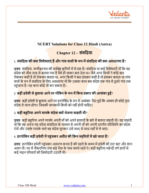 1. What are the NCERT Solutions for Class 12 Hindi Chapter 12 'Samvadiya' as per CBSE 2025–26 guidelines?