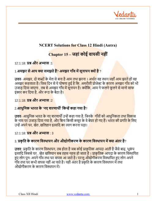 FAQs on NCERT Solutions for Class 12 Hindi Antra Chapter 15 Jahan Koi Wapsi Nahi 2025-26