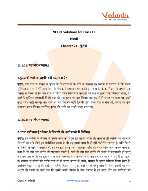 Chapter-wise Class 12 Hindi Antra Questions and Answers Free PDF Download