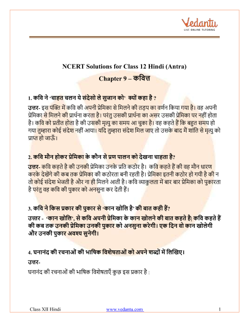 FAQs on NCERT Solutions For Class 12 Hindi Antra (Poem) Chapter 9 Kavitt - 2025-26