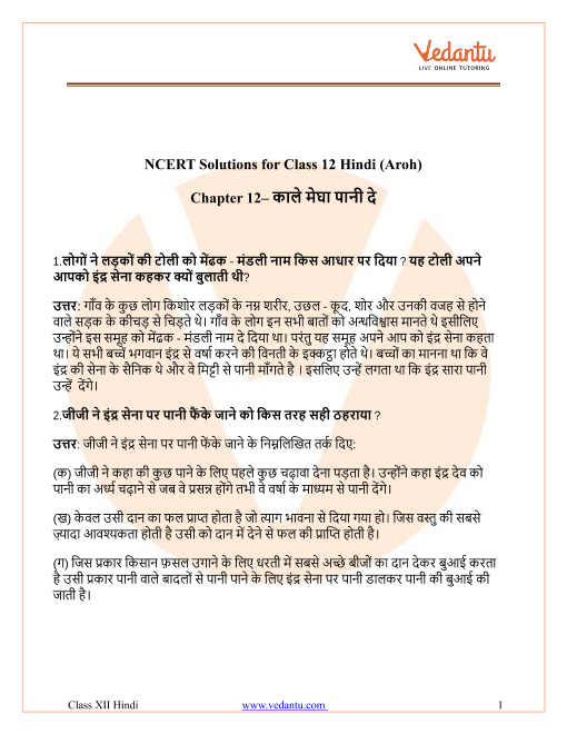 Master Kaale Megha Paani De Class 12 With Vedantu's Expert Solutions