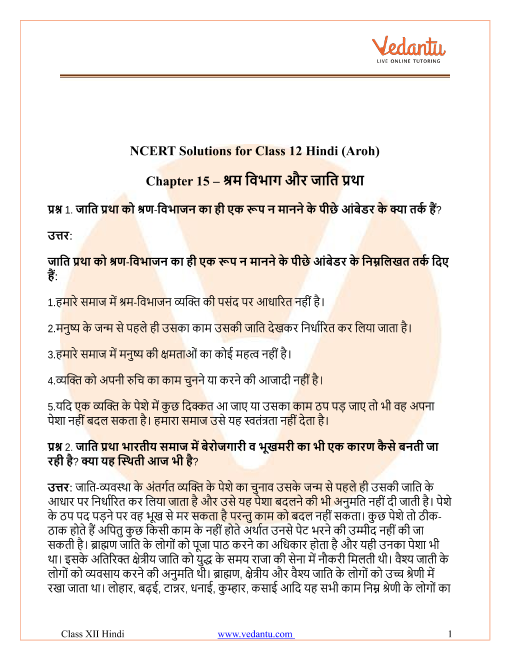 FAQs on NCERT Solutions for Class 12 Hindi Chapter 15 Shram Vibhajan Aur Jati Pratha