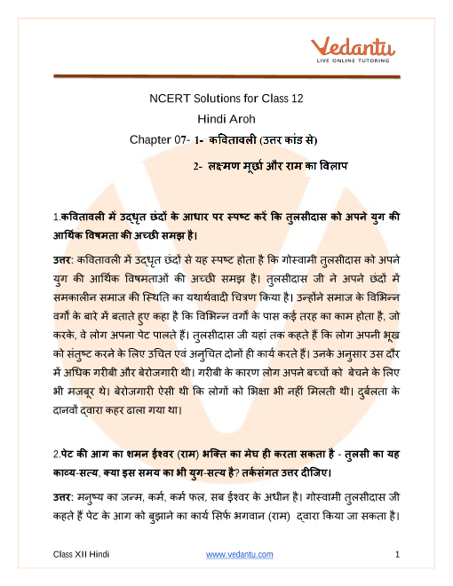 FAQs on NCERT Solutions for Class 12 Hindi Aroh Chapter 7 Kavitavali , Laxman Murcha Aur Ram Ka Bilap (Poem)