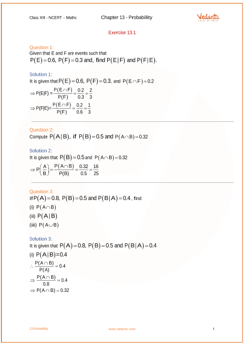 FAQs on NCERT Solutions For Class 12 Maths Chapter 13 Probability - 2025-26