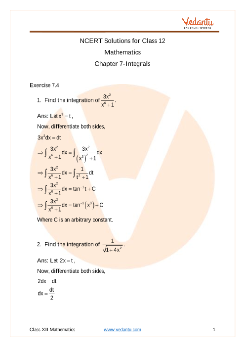 FAQs on NCERT Solutions For Class 12 Maths Chapter 7 Integrals Exercise 7.4 - 2025-26