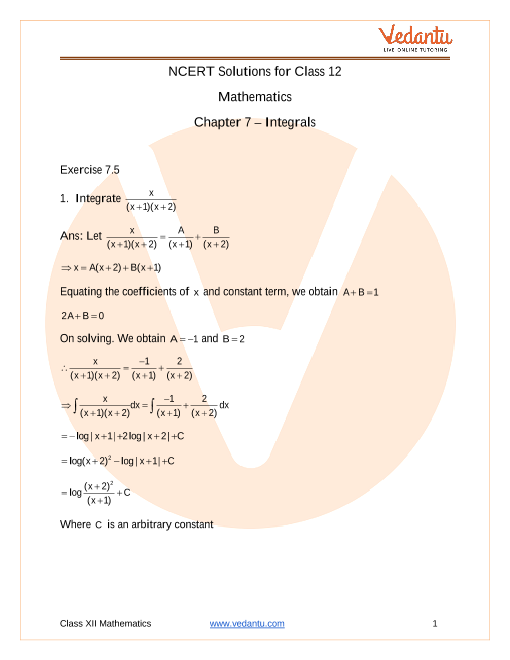 FAQs on NCERT Solutions For Class 12 Maths Chapter 7 Integrals Exercise 7.5 - 2025-26