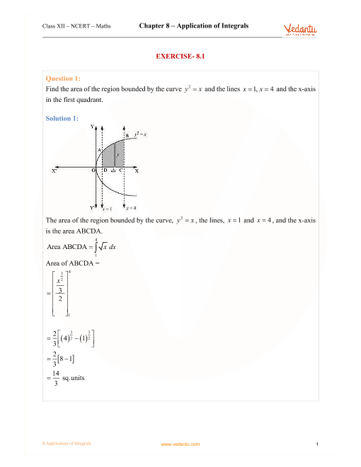 Application Of Integrals - Exercise-wise Questions and Answers For Class 12 Maths - Free PDF Download