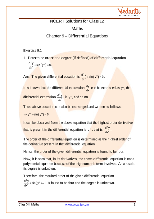 You can find comprehensive and expert-verified NCERT Solutions for Class 12 Maths Chapter 9 on Vedantu. These solutions are crafted to provide clear, step-by-step explanations for every problem in the textbook, strictly following the CBSE 2025-26 syllabus and marking scheme to help students understand the correct methodology for solving differential equations.
