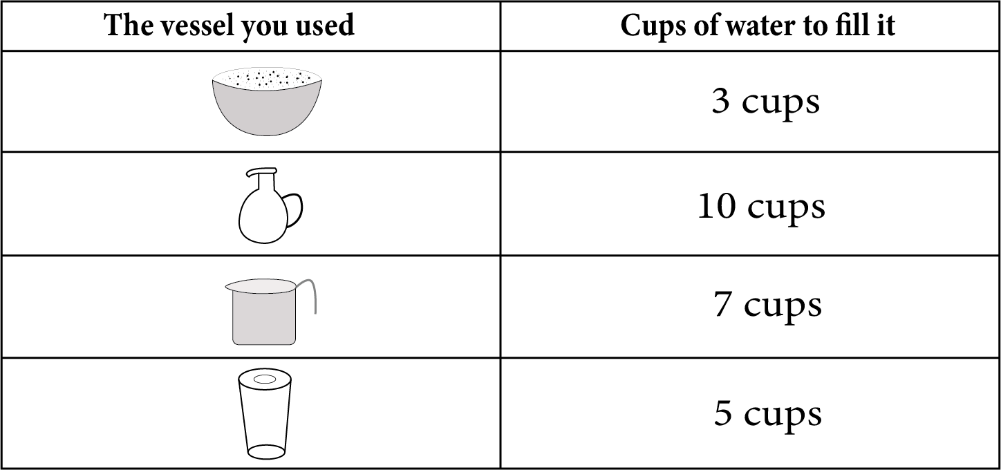 NCERT Solutions promote reasoning skills by asking students to predict outcomes, compare actual versus estimated capacities, and explain their method for determining which object holds more or less liquid.