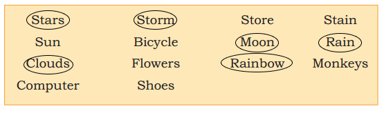 A. Read the following words and circle the words that are found in the sky.