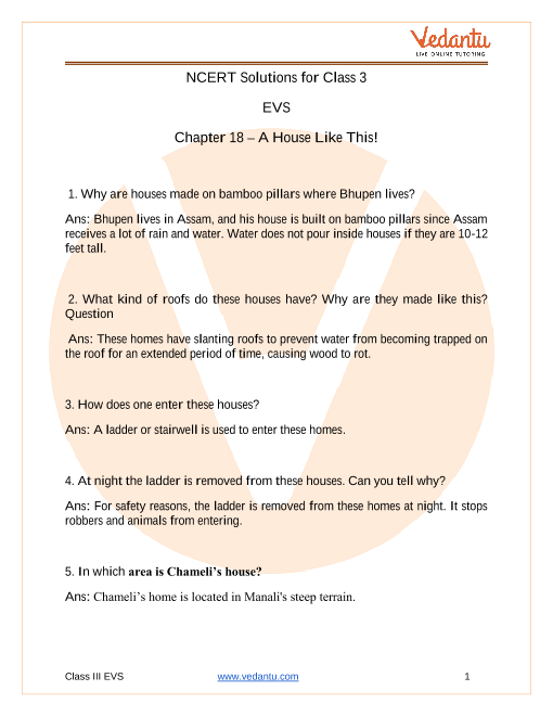 FAQs on NCERT Solutions For Class 3 Evs Chapter 18 A House Like This - 2025-26
