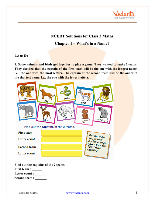 The NCERT Solutions for Class 3 Maths Chapter 1 'What's In A Name?' are prepared exactly as per the latest CBSE 2025–26 NCERT textbook syllabus and follow the stepwise problem-solving approach recommended in the official textbook. All answers follow the NCERT answer format and use CBSE-approved terminology to help students understand the concepts clearly.