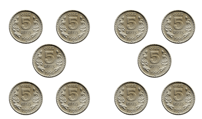 Use the following notes and coins to buy the things given below. Find at least two ways of giving the money. You may use the notes and coins more than once.
