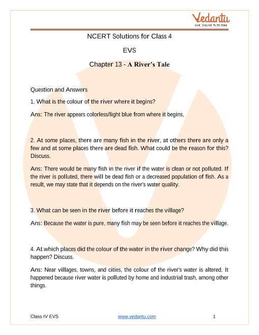 FAQs on NCERT Solutions For Class 4 Evs Chapter 13 A River's Tale - 2025-26