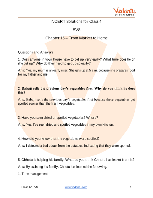 NCERT Solutions For Class 4 Evs Chapter 15 From Market To Home - 2025-26