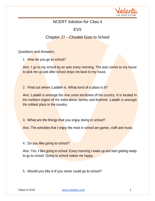 FAQs on NCERT Solutions For Class 4 Evs Chapter 27 Chuskit Goes To School - 2025-26