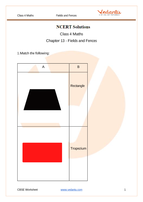 Chapter 13 of Class 4 Maths can be made easy through regular practice and subsequent revision. They must practice all the NCERT questions and can refer to NCERT Solutions. The Vedantu portal offers free downloads of NCERT Solutions for Chapter 13 of Class 4 Maths. Students may get it for free and use it whenever they like. These NCERT Solutions for Class 4 Maths Chapter 13 are useful, and if a student has any questions, they can easily check the NCERT solutions for Class 4 Maths Chapter 13 fields and fences to see how the issue was solved.