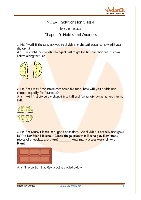 FAQs on NCERT Solutions For Class 4 Maths Chapter 9 Halves And Quarters - 2025-26