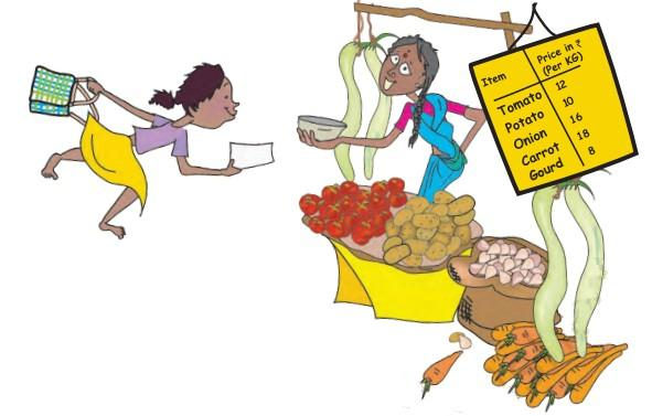 Ans: From the price list, we can say that 1 kg tomato = Rs 12
