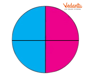 b) $\dfrac{2}{4}$ blue , $\dfrac{2}{4}$ white