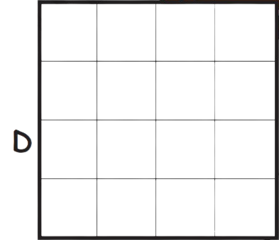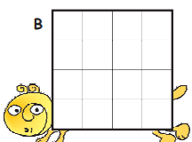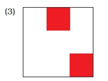 1) Make different patterns by colouring some squares in the grids B, C, D. What part of the grid did you colour? What part of the grid remained white? Write