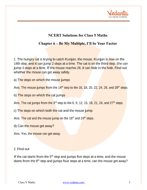 2. | Class 5 Be My Multiple, I’ll be Your Factor Important Questions |