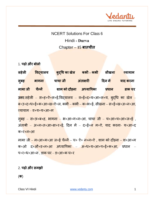 NCERT Solutions For Class 6 Hindi Durva Chapter 15 Baatcheet - 2025-26
