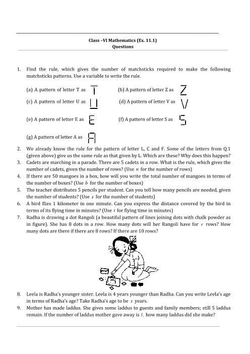NCERT Solutions For Class 6 Maths Chapter 11 Algebra Exercise 11.1 - 2025-26