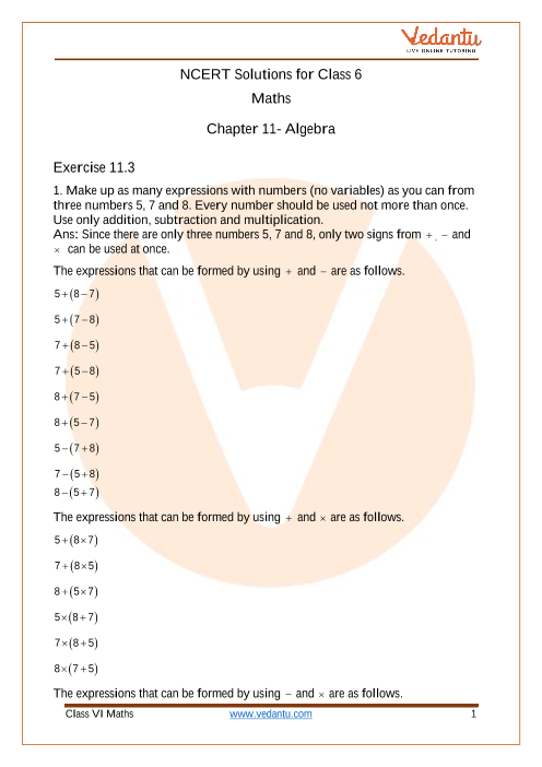In NCERT Solutions Class 6 Maths Chapter 11 Exercise 11 3, you’ll explore Algebra in a simple and fun way. This exercise helps you understand how to create and solve basic algebraic expressions using numbers and variables. If you ever got confused about forming expressions or figuring out what operations to use, this chapter breaks down the steps for you with easy examples.