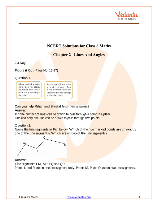 NCERT Solutions For Class 6 Maths Chapter 2 Lines And Angles - 2025-26