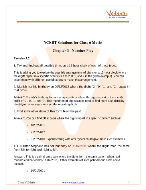 FAQs on NCERT Solutions For Class 6 Maths Chapter 3 Number Play Exercise 3.7 - 2025-26
