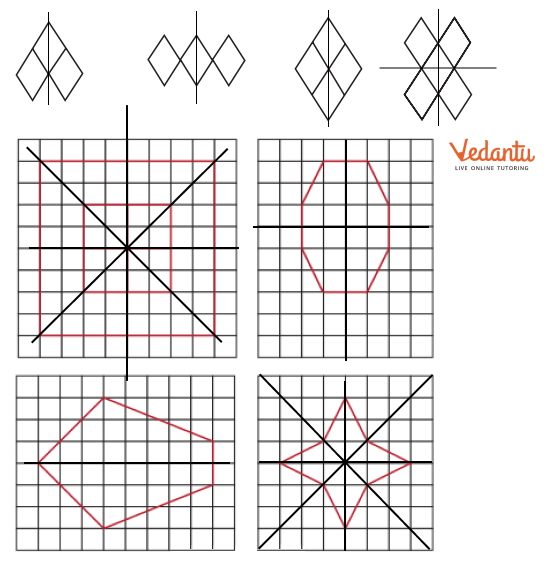 - Identifying a line of symmetry in various figures.