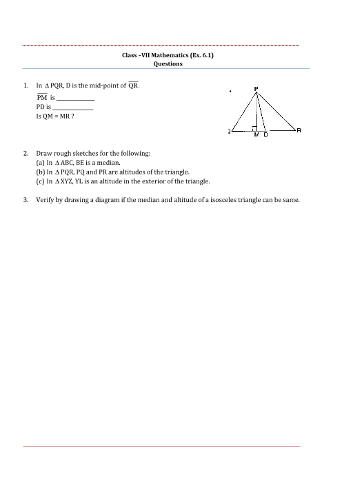 The NCERT solutions clarify this by showing their different functions in problems. A median is always related to the midpoint of a side and is used in problems about dividing a side into two equal halves. An altitude is always related to the perpendicular height and is used in problems involving right angles. In an isosceles or equilateral triangle, a median and an altitude can be the same line, and the solutions for those specific cases help solidify this advanced concept.
