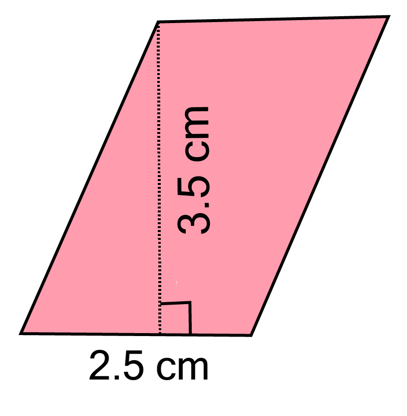 $\therefore $ Area of parallelogram ${\text{ = 2}}{\text{.5 x 3}}{\text{.5 = 8}}{\text{.75 c}}{{\text{m}}^2}{\text{ }}$